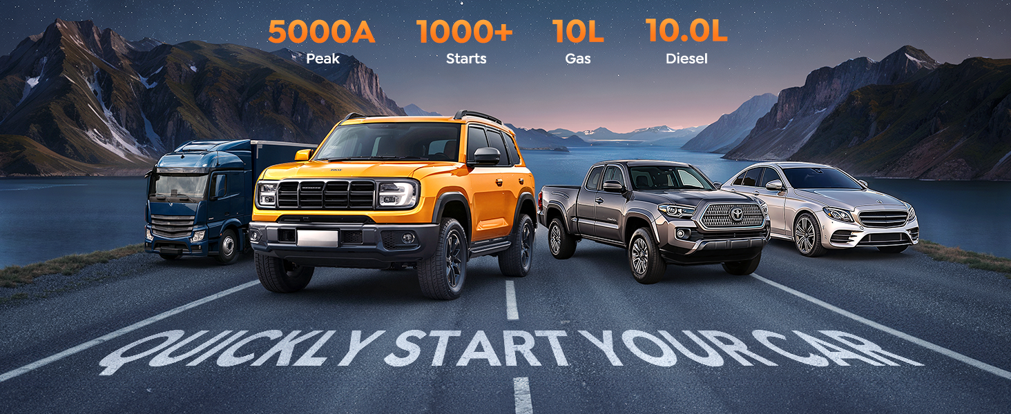 【5000A Jump Starter, Instant Start】With an impressive 5000A peak current, this jump starter power pack can easily jump-start your 12V vehicles (up to all gas/10L diesel engines) in any weather—even with fully dead batteries using its dedicated forced start function. Joltekon VP10 car battery booster jump starter, your reliable emergency solution.